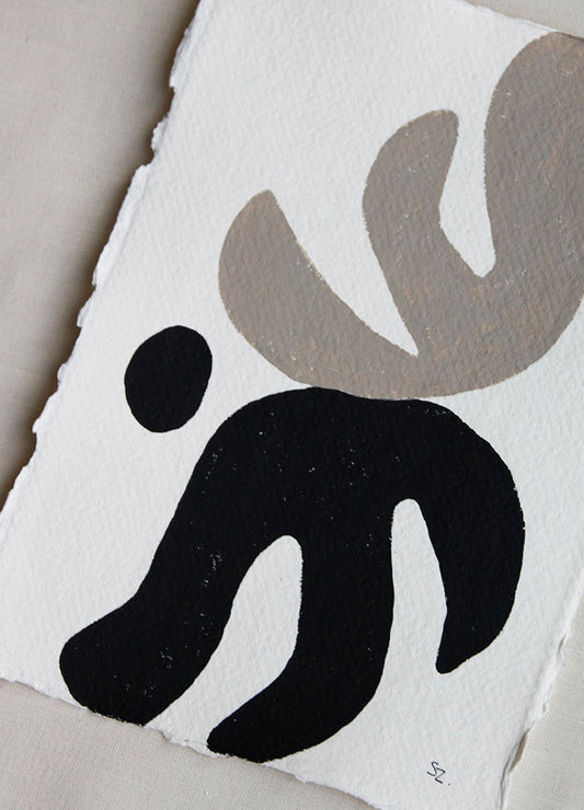Abstract schilderij zwart met taupe 70x100 cm - Hoja Dúo